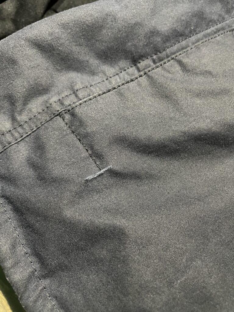 今回は生地ではなく縫い糸のほつれのみだったため、そのまま縫い直して完了。